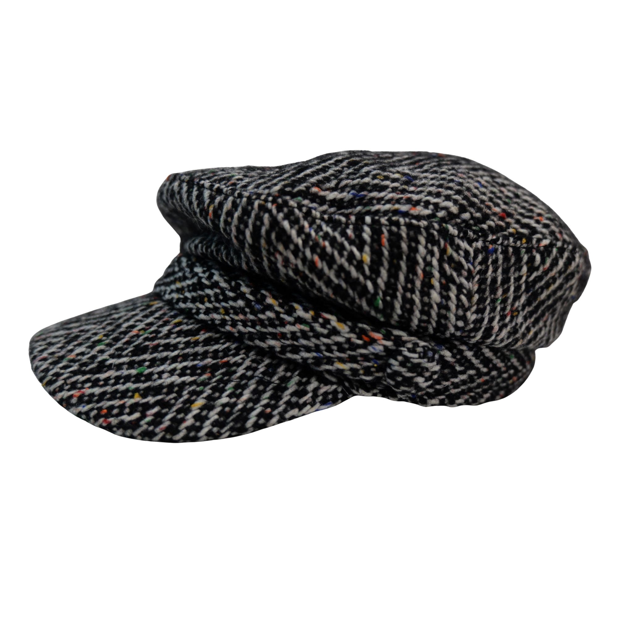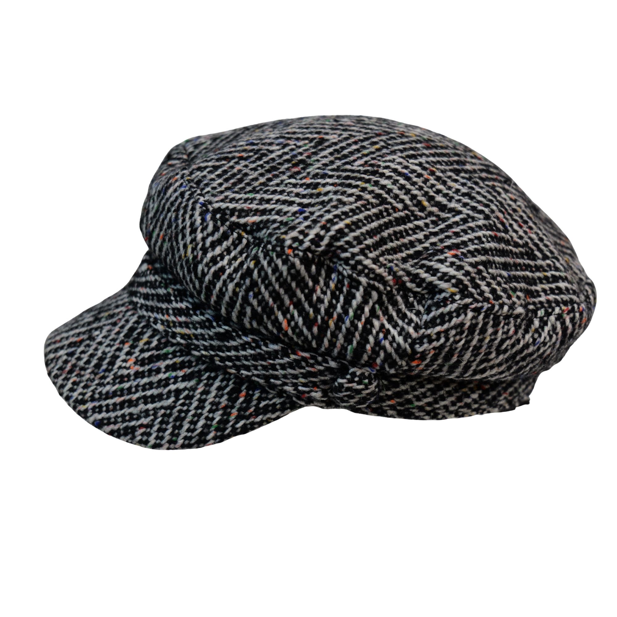 Lady Captain Black Caps for Women- 100% Wool Newsgirl Cap in Plaid Pattern Style Tweed Flat Cap for Any Occasion and Season