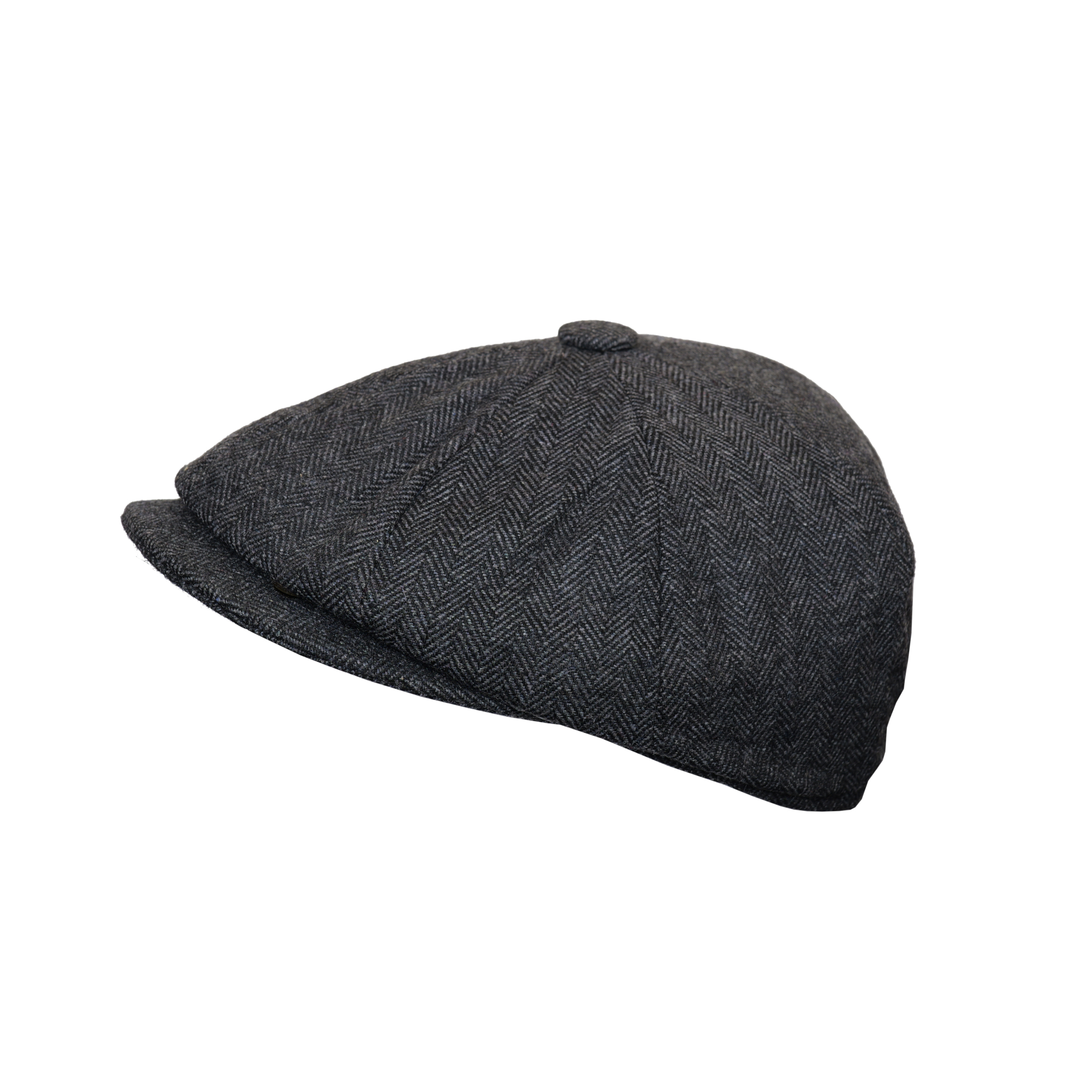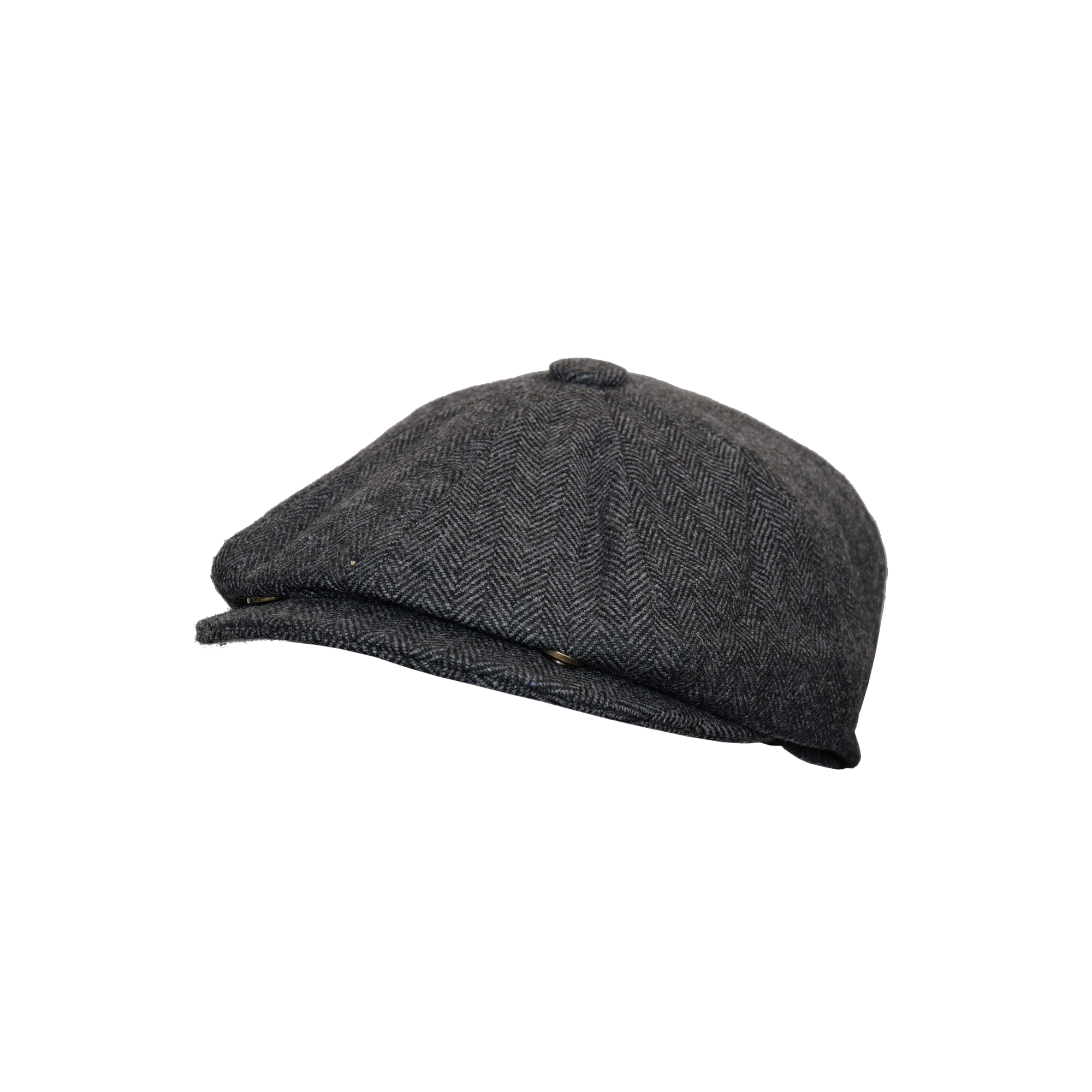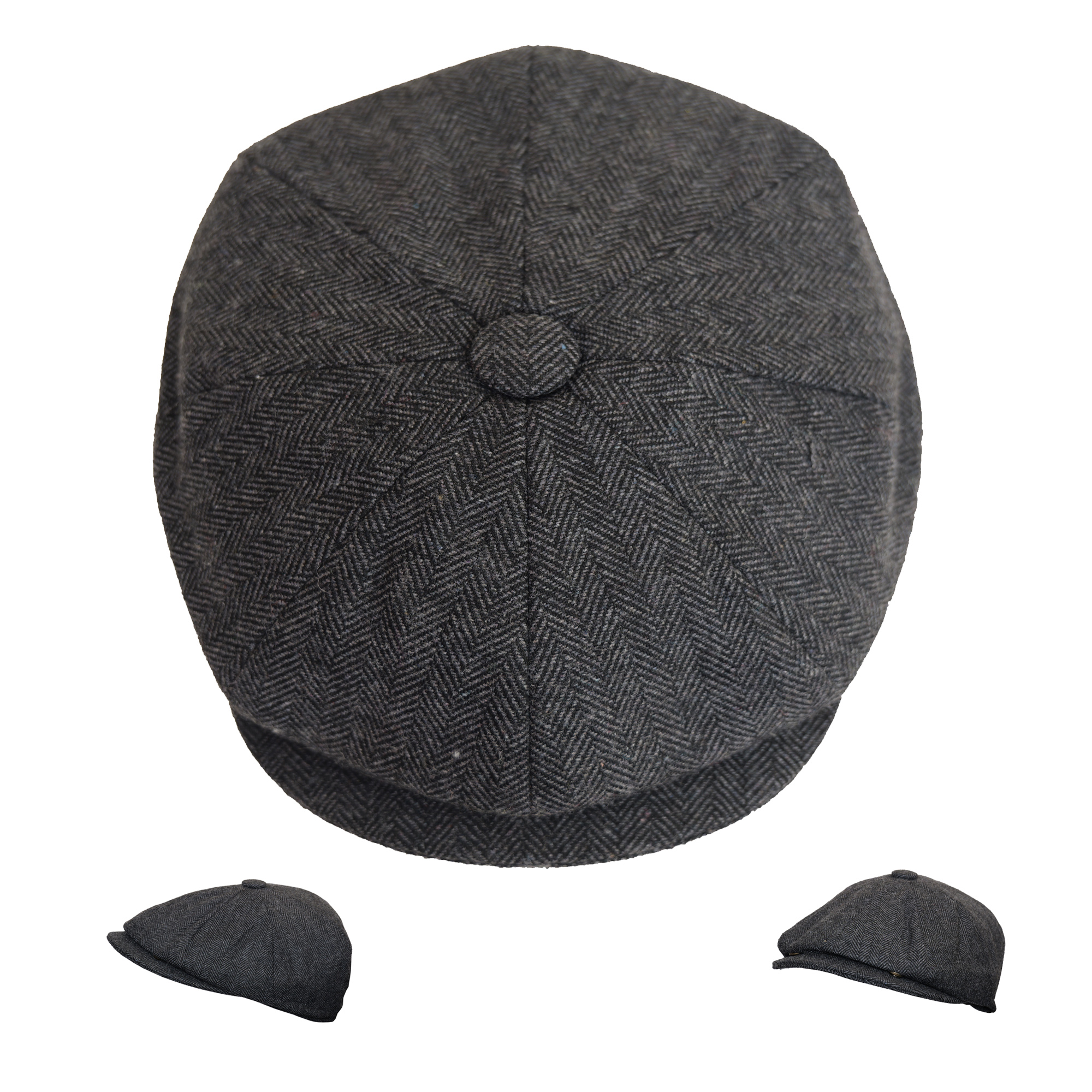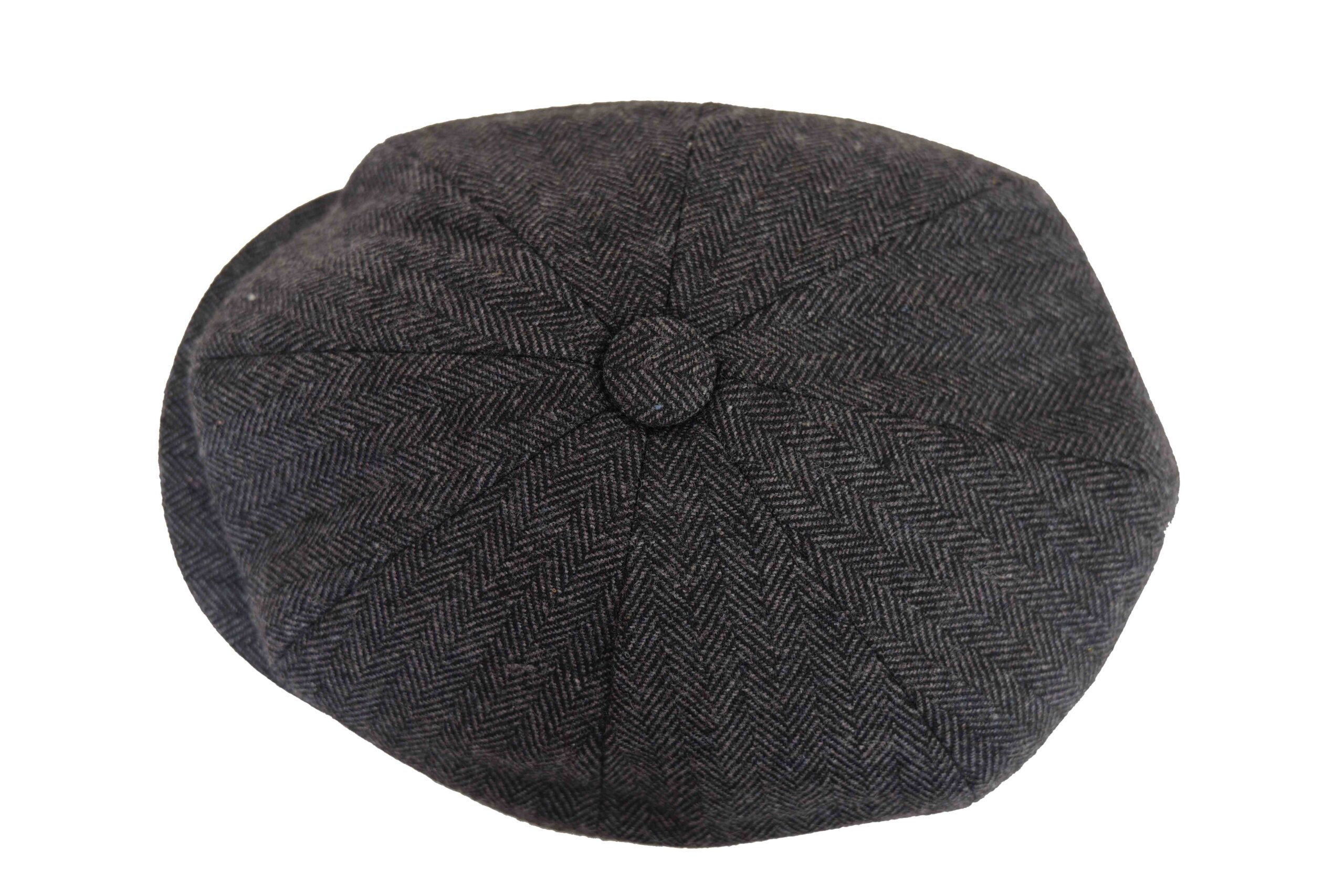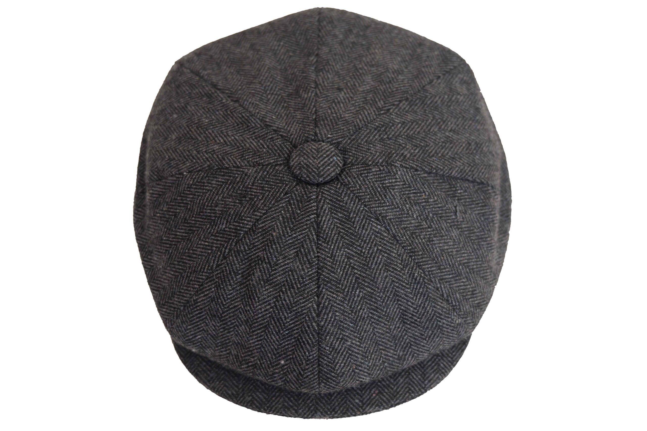 Men’s Hand Woven Dark Grey Wool Newsboy Cap 8 Panels Herringbone Flat Hat Classic Grey Brown Wool Herringbone Newsboy Cap Heritage Bakerboy