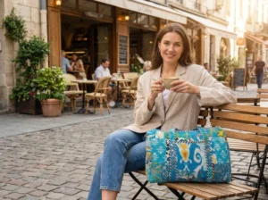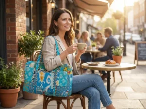 Fresh, vibrant, and effortlessly stylish, the Azure Mosaic Quilted Duffle Bag is your perfect companion for spontaneous escapes and everyday adventures. Designed in a striking patchwork of turquoise and sky-blue tones, this bag blends botanical motifs, intricate patterns, and artisanal-inspired prints for a look that feels both modern and globally inspired.