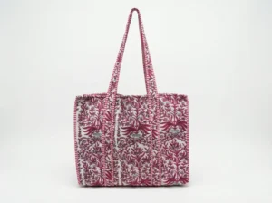 Elegant and timeless, the Crimson Garden Quilted Tote features an intricate botanical print in rich crimson tones set against a soft ivory background. The detailed floral and vine motifs create a classic, heritage-inspired look that feels both refined and versatile.