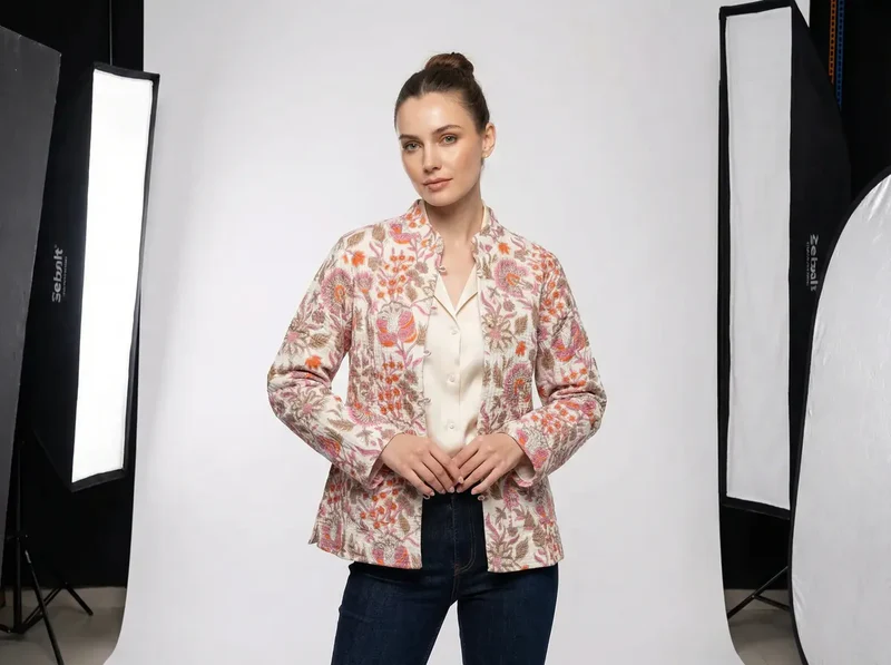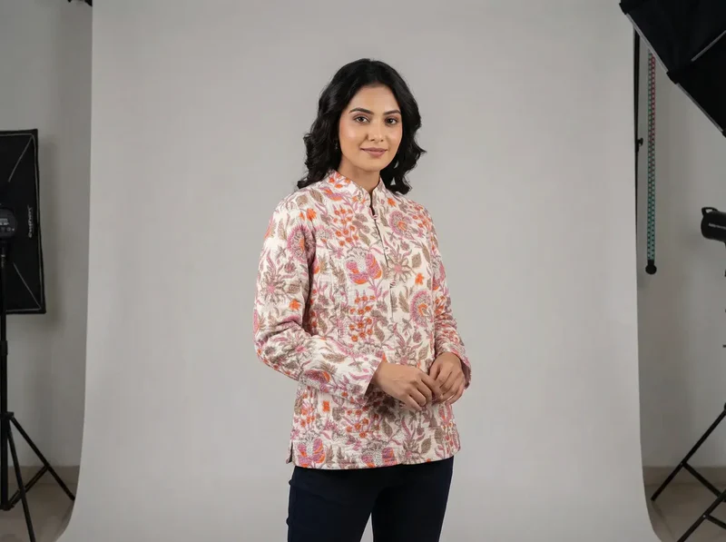Notting Hill Lightweight, Soft Blush Garden Mandarin Jacket