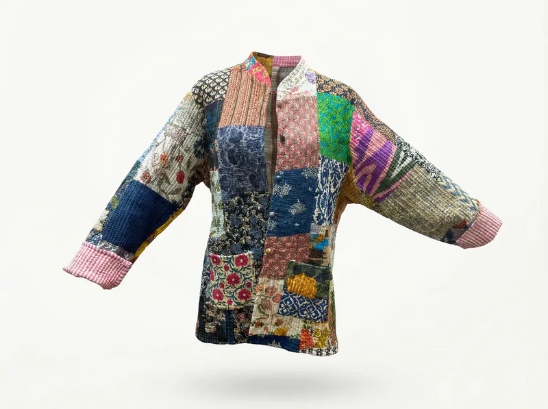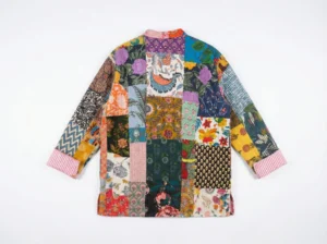 A true celebration of color and craftsmanship, the Heritage Patchwork Quilted Jacket is a wearable work of art. Designed with an eclectic mix of floral, geometric, and textured fabric panels, each patch tells its own story—coming together in a beautifully balanced mosaic of rich hues and intricate patterns.