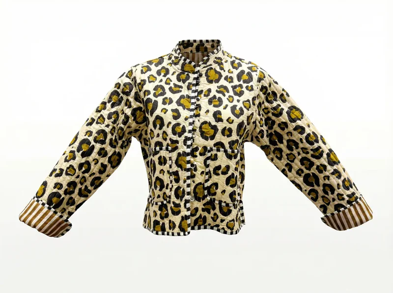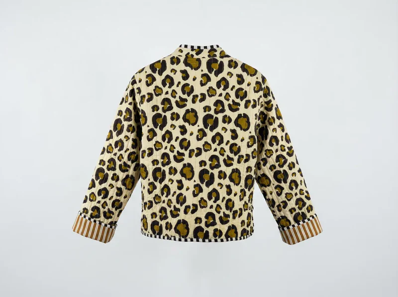 Confident and effortlessly chic, the Sahara Leopard Quilted Jacket brings a modern edge to a timeless print. Featuring a bold leopard pattern in warm golden tones and deep black set against a soft ivory base, this piece strikes the perfect balance between statement and sophistication.