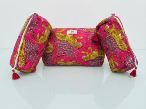 Bold, vibrant, and full of personality, the Wild Orchid Leopard Travel Pouch Trio makes organizing your essentials effortlessly stylish. Set against a striking fuchsia pink background, golden leopards prowl through delicate leafy branches, creating a playful yet sophisticated statement print.
