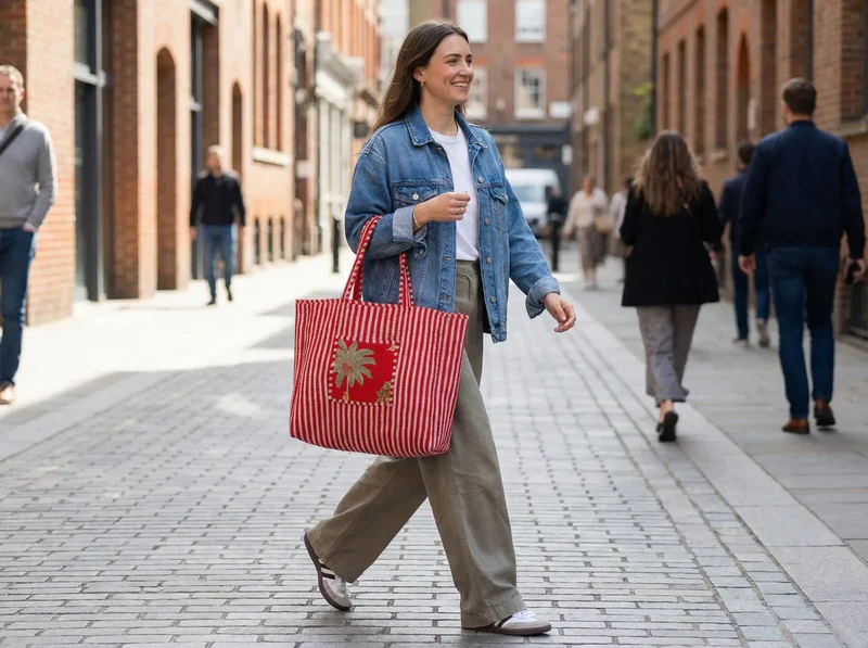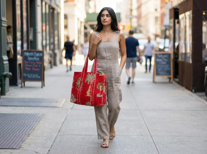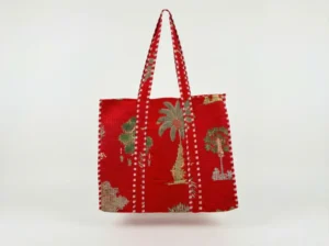 Bold, vibrant, and effortlessly refined, the Scarlet Palm Heritage Quilted Tote is designed to make a statement. Set against a rich red backdrop, intricate gold-toned palm trees, architectural motifs, and botanical details create a look inspired by timeless travel and exotic landscapes.
