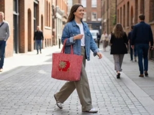 Crafted from soft quilted cotton, this tote offers structure without heaviness, making it perfect for everyday use. The spacious interior provides ample room for your essentials — from laptops and notebooks to shopping finds or travel necessities. Coordinating striped shoulder straps add comfort and a polished finishing touch.