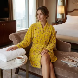 Be the first to review “Notting Hill Soft and Comfortable Short Mustard Yellow Meadow Velvet Wrap Robe”