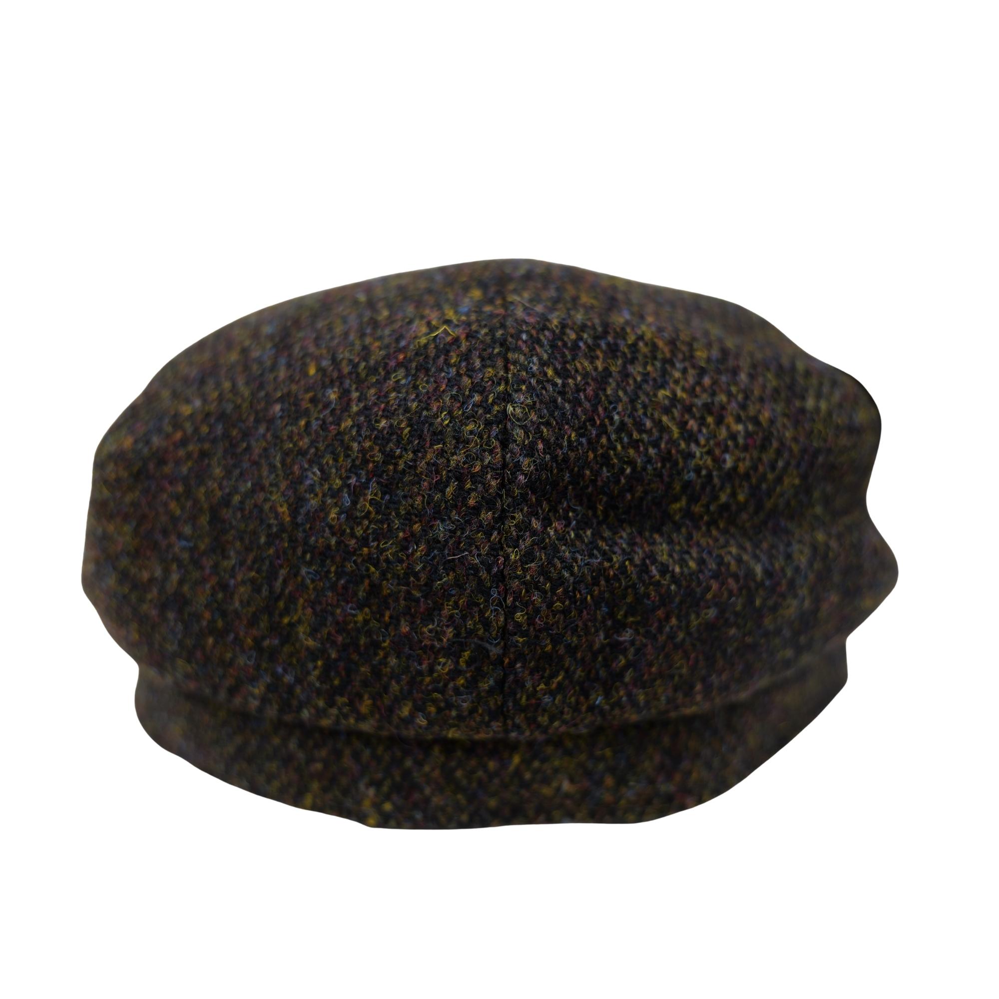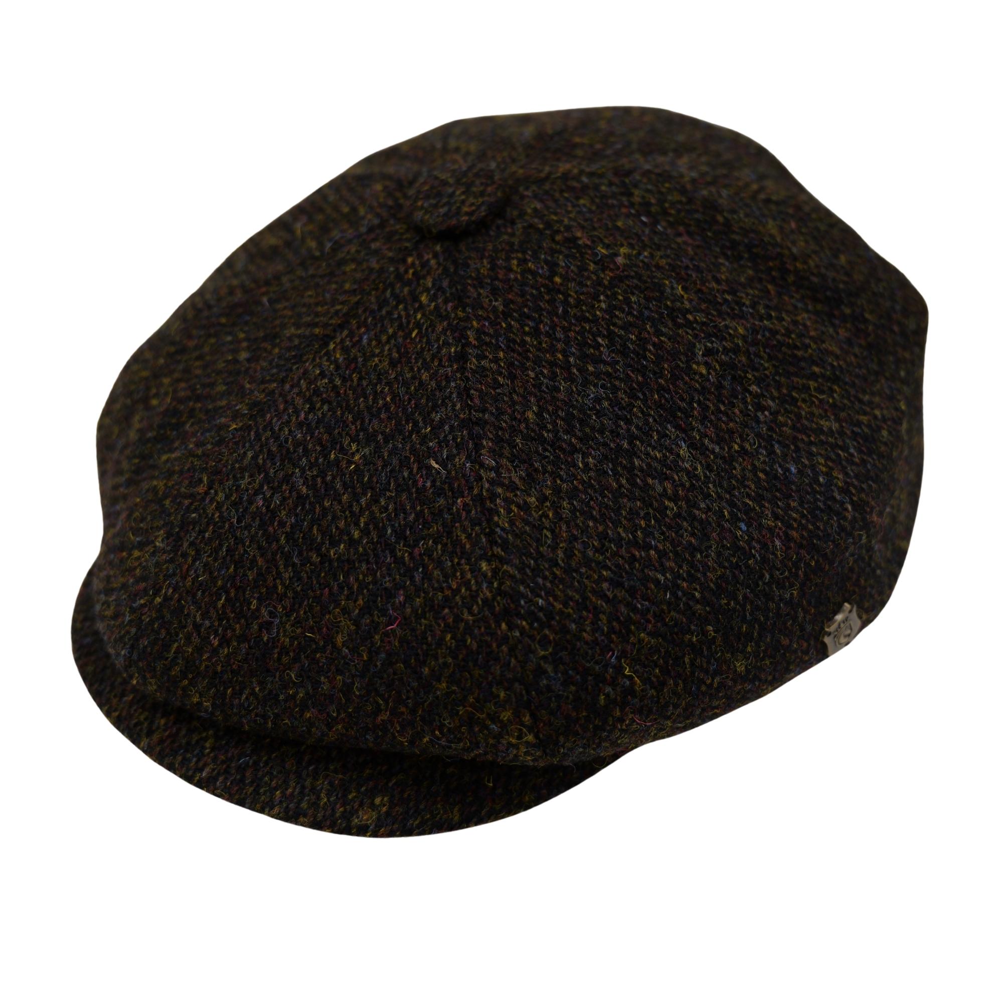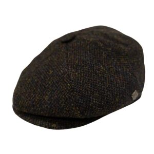 Baker Boy Cap Harris Tweed British Made The Newsboy traditional cap is made in 8 sections in Harris Tweed, in  Coffee Herringbone with a quilted cotton  inner and come with the Harris Tweed Label of Authenticity. This Hat has 8 panels sewn together with a button top. Crafted in timeless fabrics Pure Wool, they’re the perfect way to add character and everyday style to your look. Dry Clean Only.