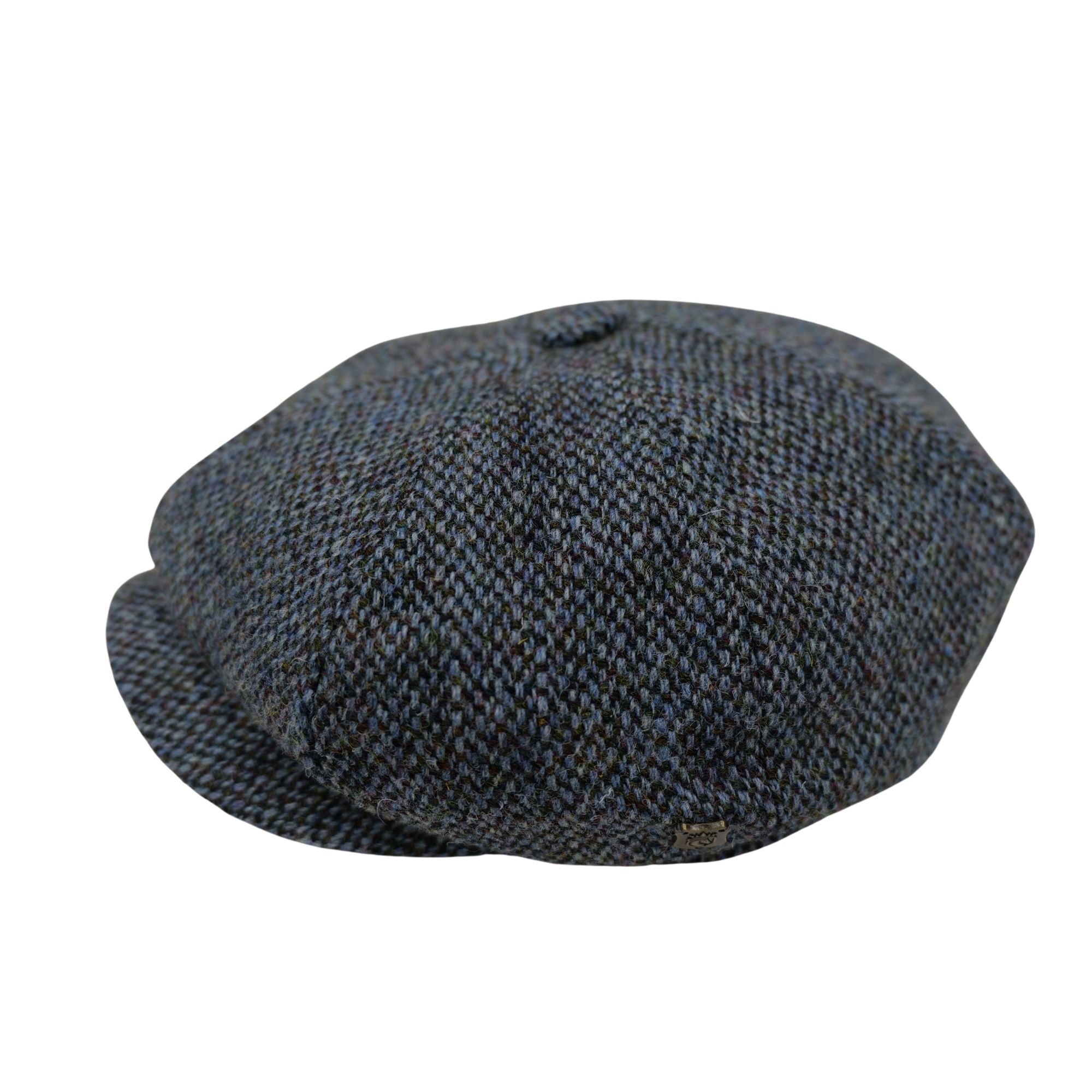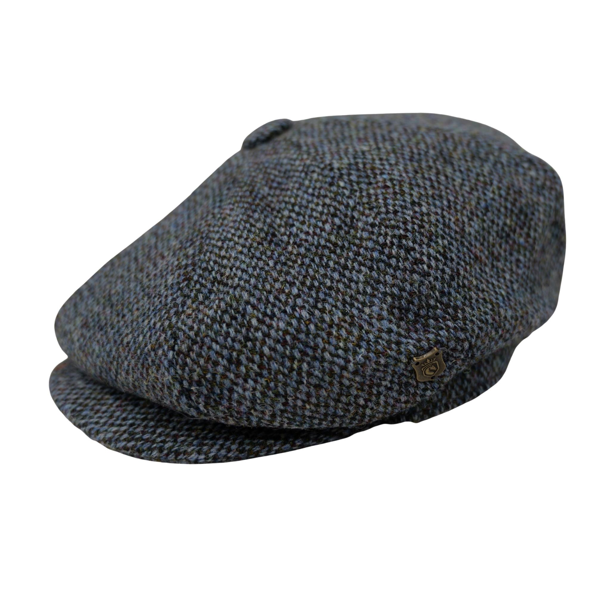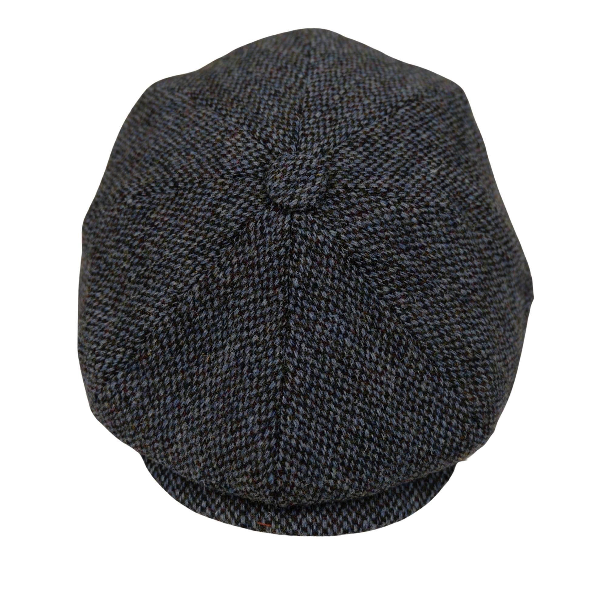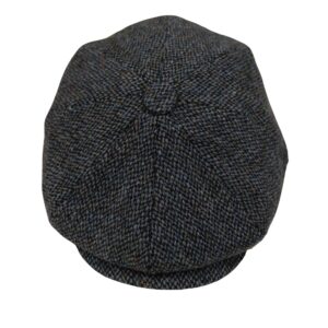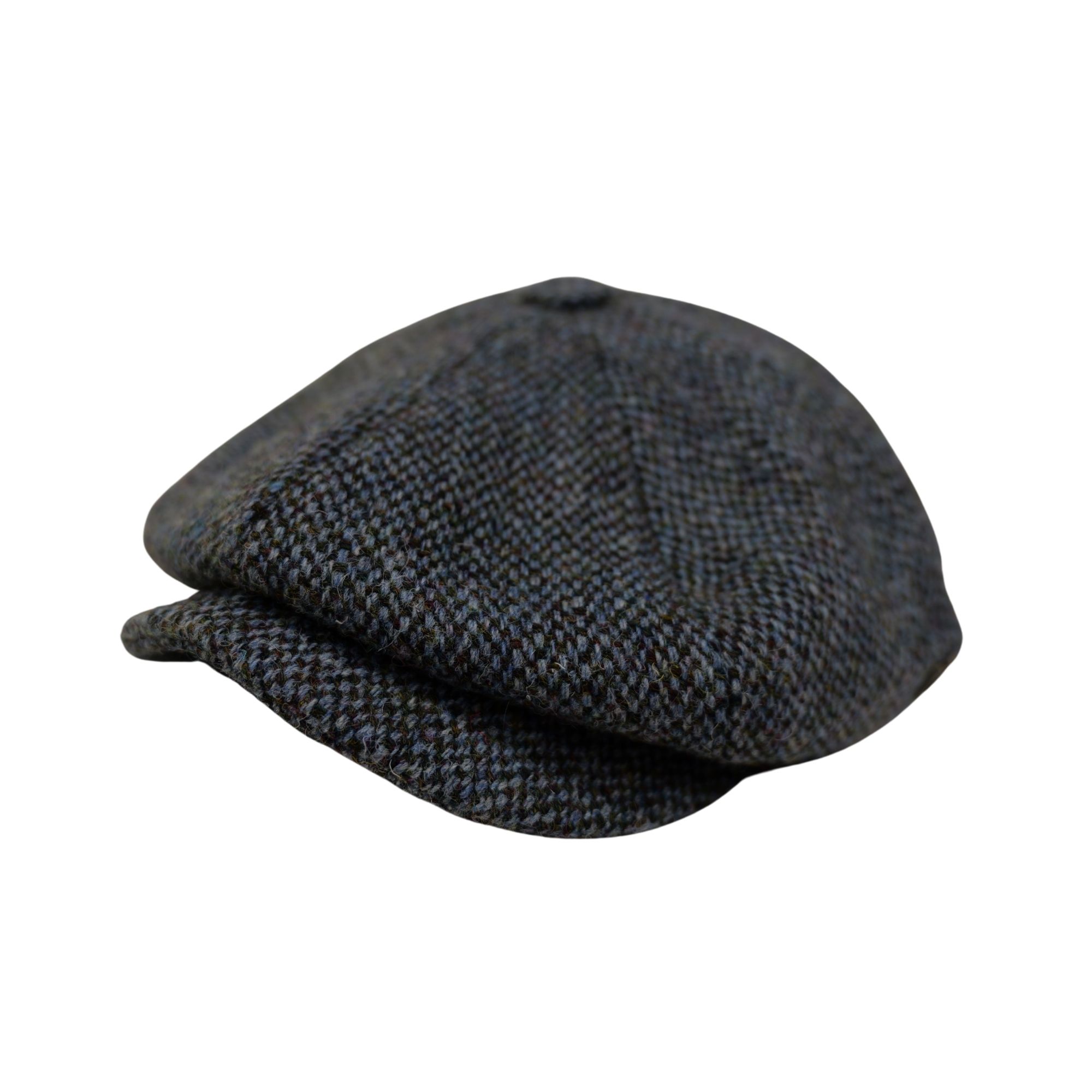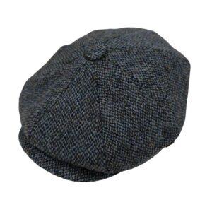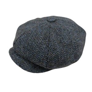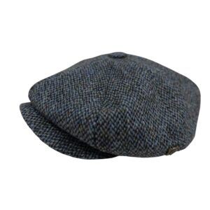 Baker Boy Cap Harris Tweed British Made The Newsboy traditional cap is made in 8 sections in Harris Tweed, in Grey/Teal Herringbone with a quilted cotton inner and come with the Harris Tweed Label of Authenticity. This Hat has 8 panels sewn together with a button top. Crafted in timeless fabrics Pure Wool, they’re the perfect way to add character and everyday style to your look. Dry Clean Only.