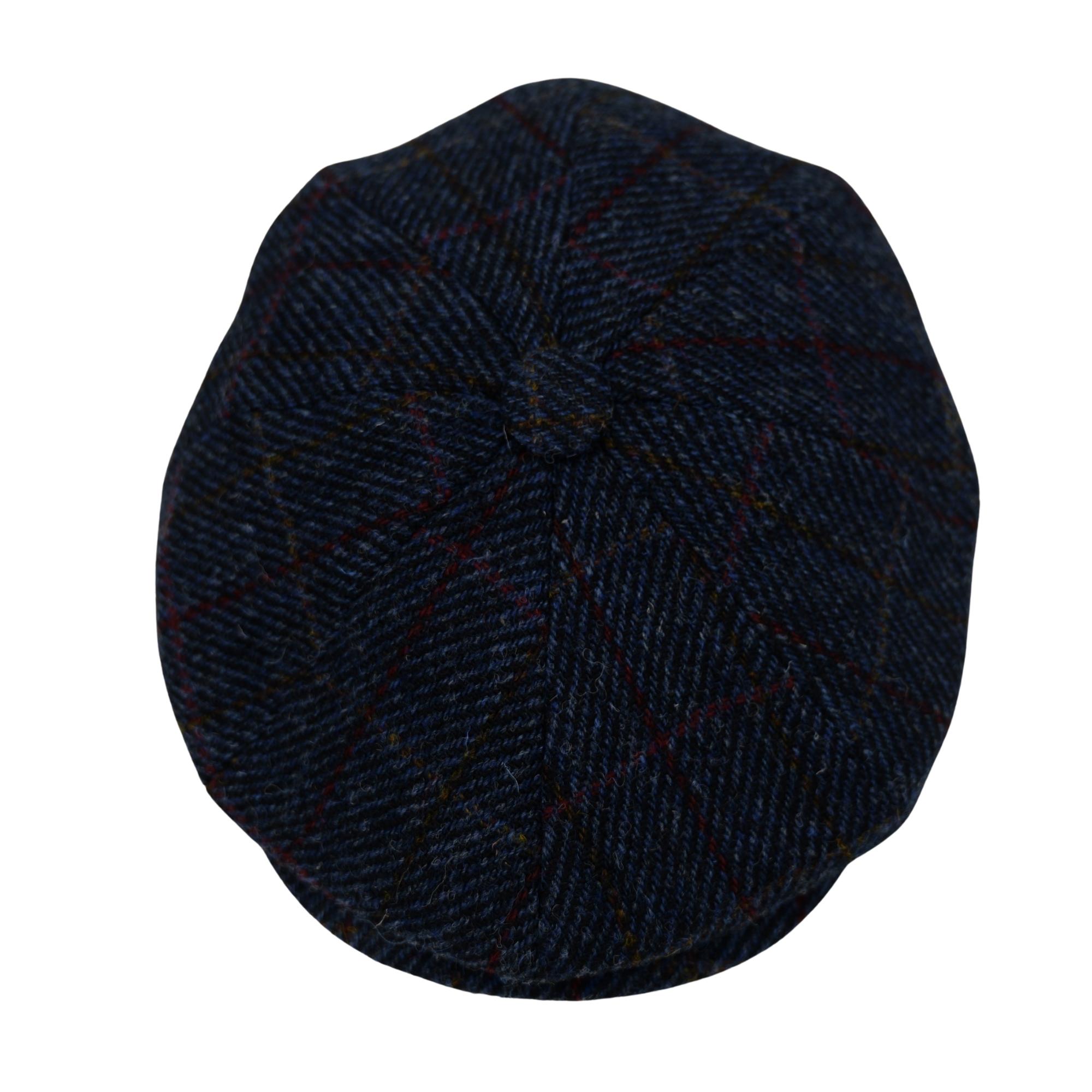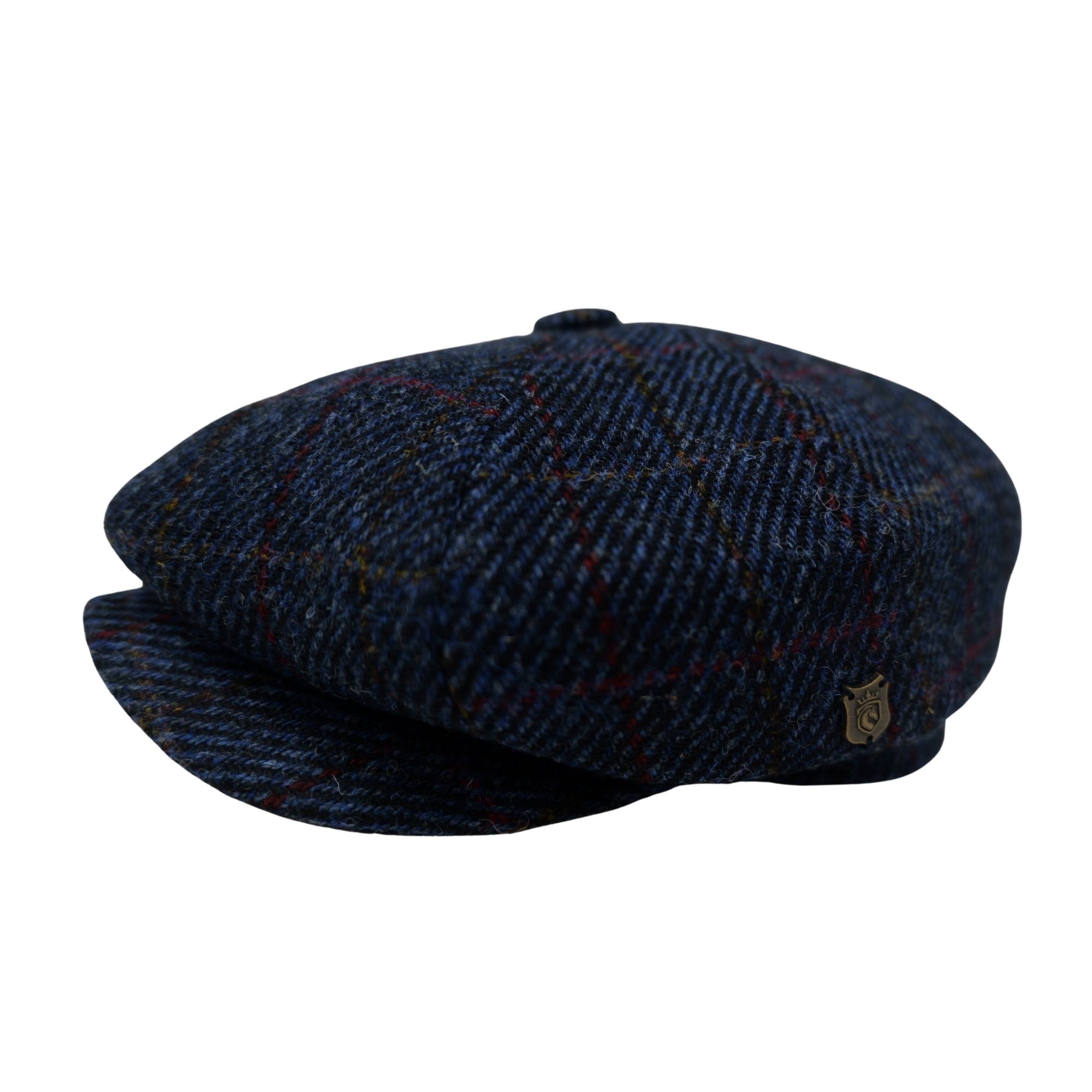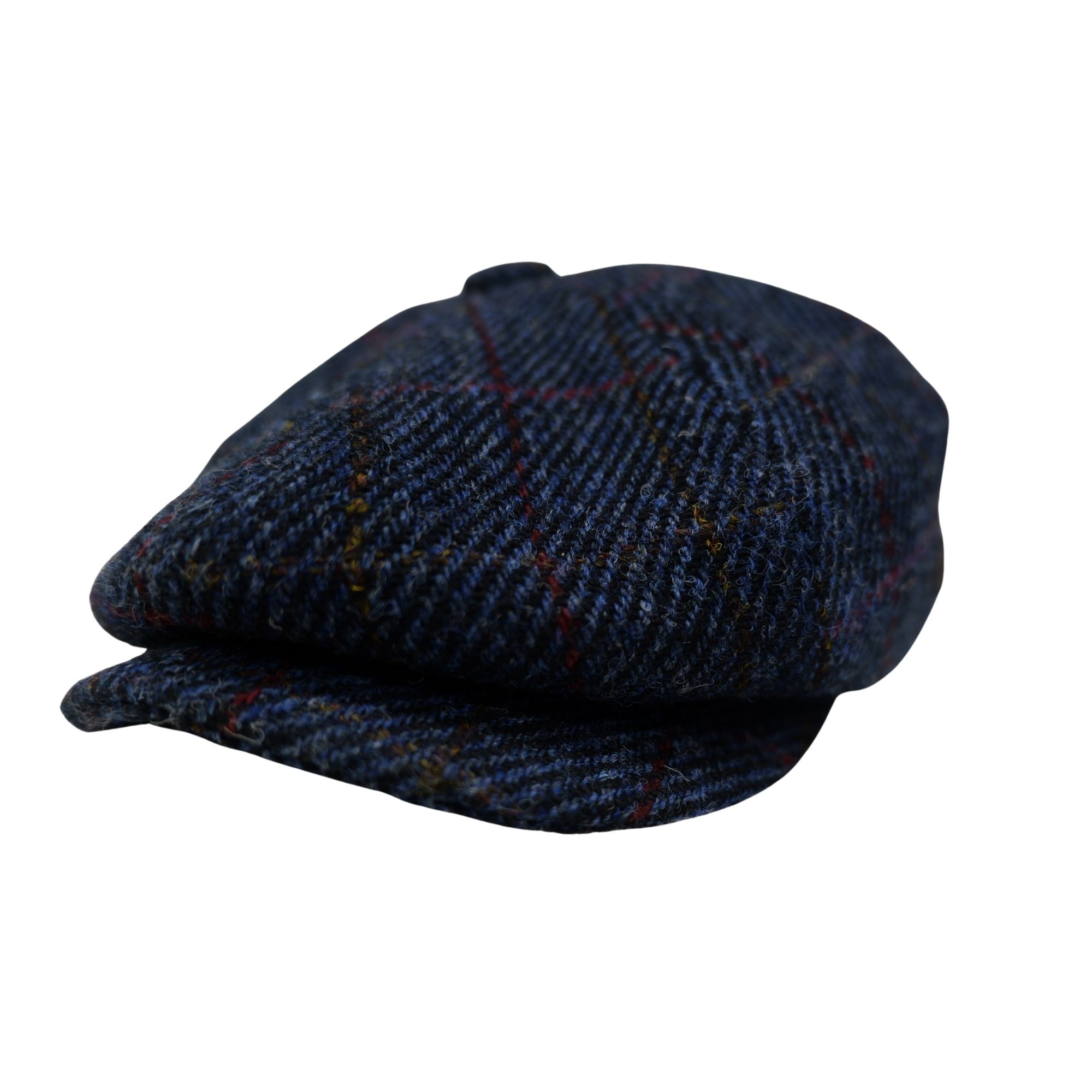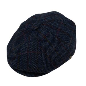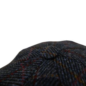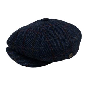 Baker Boy Cap Harris Tweed British Made The Newsboy traditional cap is made in 8 sections in Harris Tweed, in Navy Check Herringbone with a quilted cotton inner and come with the Harris Tweed Label of Authenticity. This Hat has 8 panels sewn together with a button top. Crafted in timeless fabrics Pure Wool, they’re the perfect way to add character and everyday style to your look. Dry Clean Only.