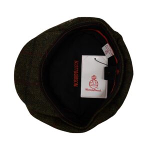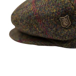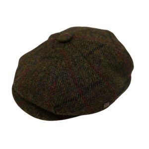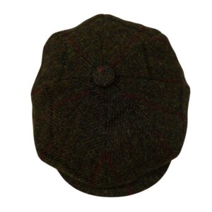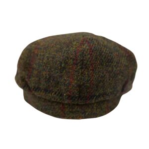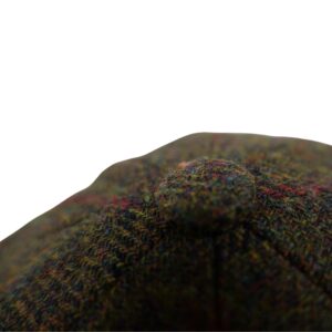 Baker Boy Cap Harris Tweed British Made The Newsboy traditional cap is made in 8 sections in Harris Tweed, in Olive Check Herringbone with a quilted cotton inner and come with the Harris Tweed Label of Authenticity. This Hat has 8 panels sewn together with a button top. Crafted in timeless fabrics Pure Wool, they’re the perfect way to add character and everyday style to your look. Dry Clean Only.