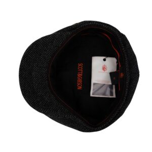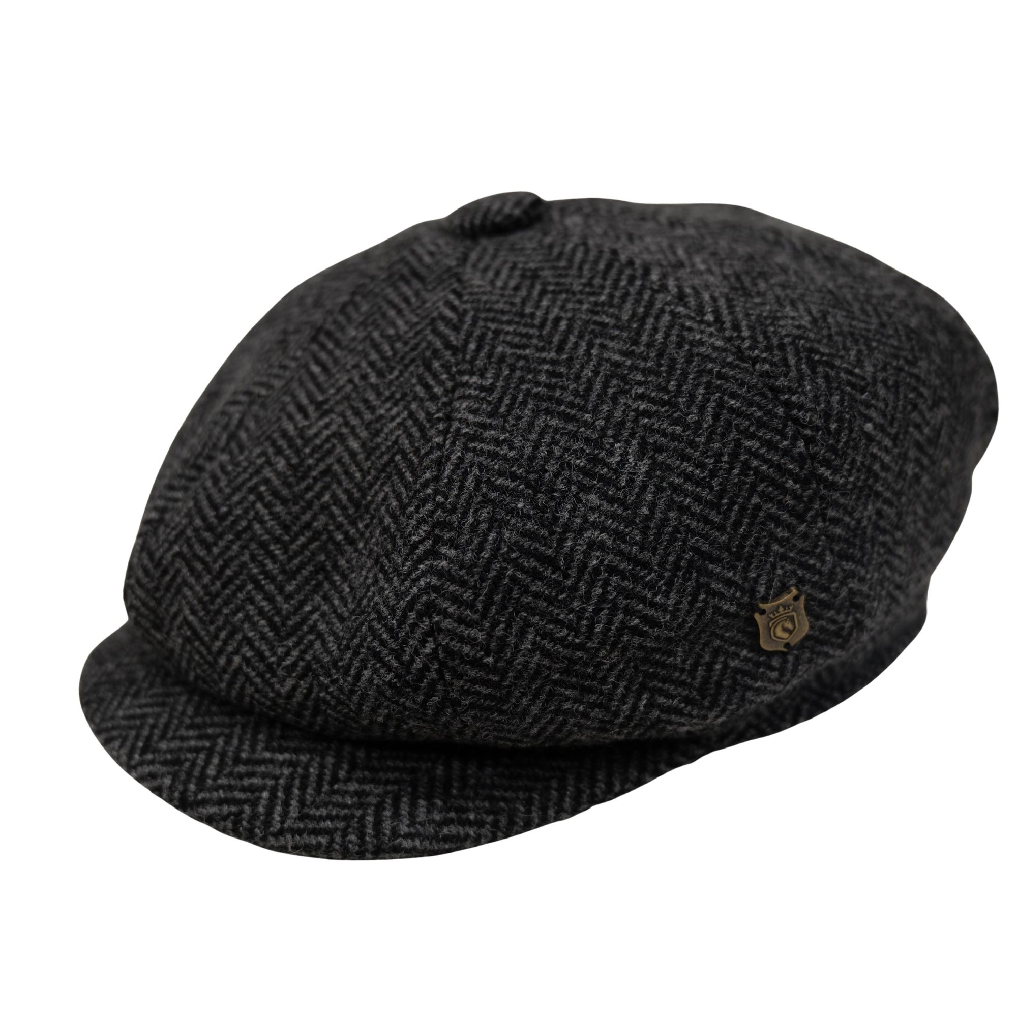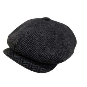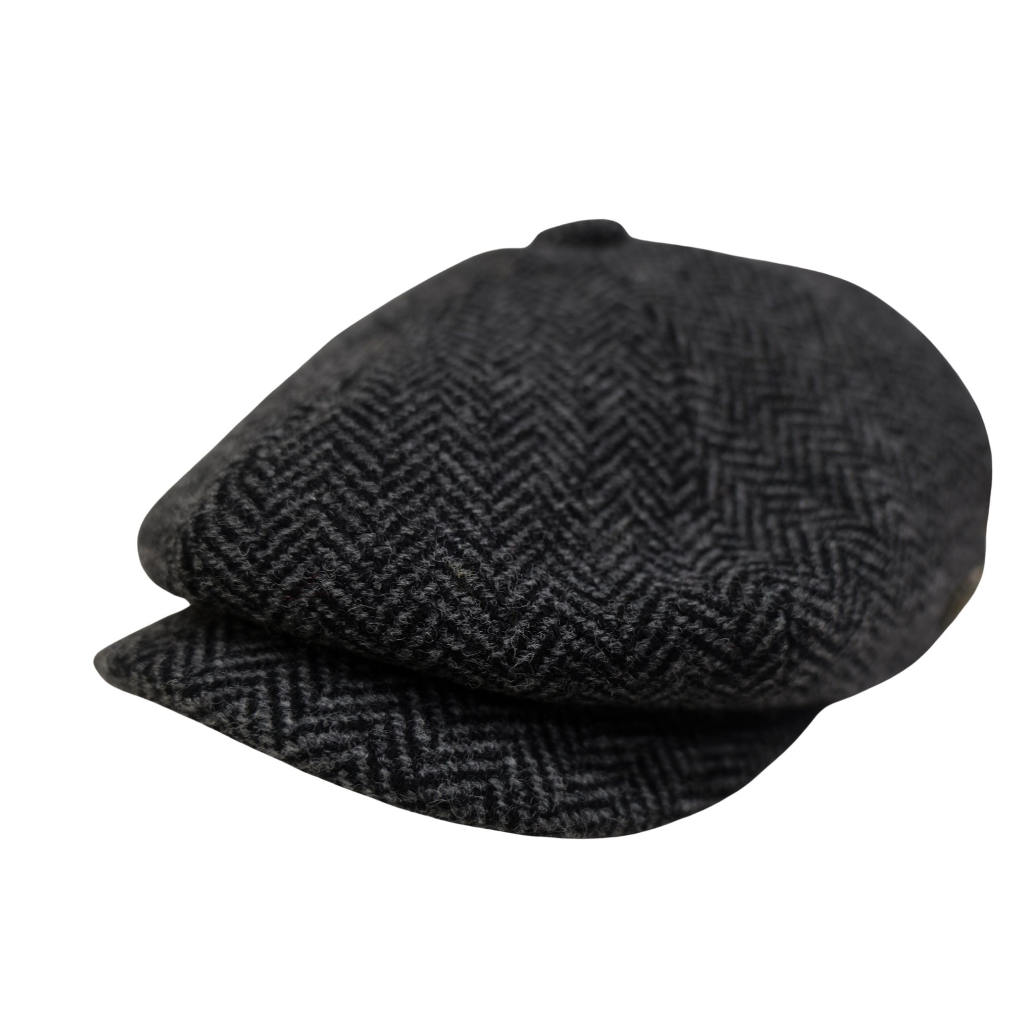 Baker Boy Cap Tweed British Made The Newsboy traditional cap is made in 8 sections in Tweed, in Black with a quilted cotton inner. This Hat has 8 panels sewn together with a button top. Crafted in timeless fabrics Pure Wool, they’re the perfect way to add character and everyday style to your look. Dry Clean Only.