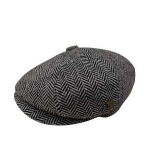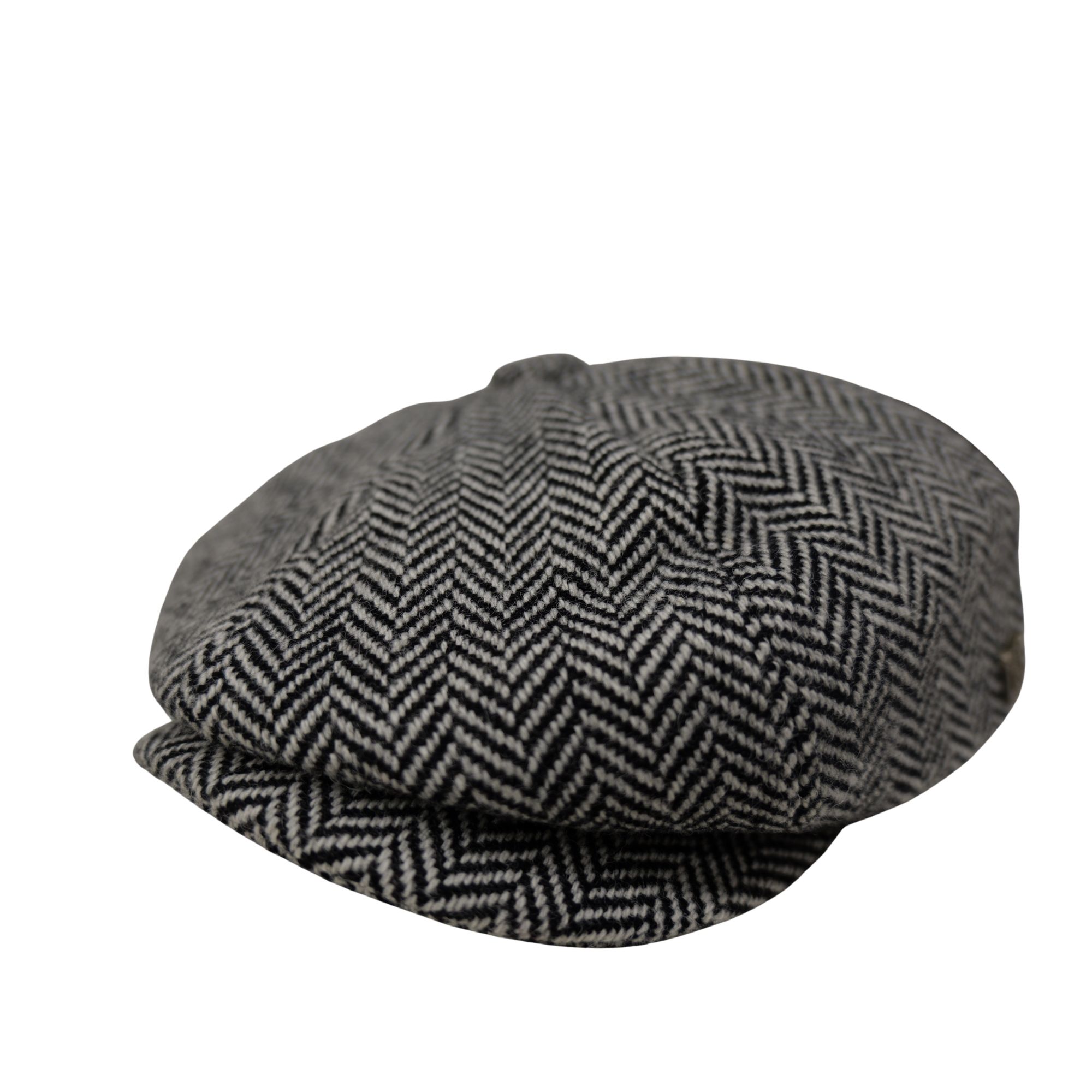 Baker Boy Cap Tweed British Made The Newsboy traditional cap is made in 8 sections in Tweed, in Grey/ White with a quilted cotton inner. This Hat has 8 panels sewn together with a button top. Crafted in timeless fabrics Pure Wool, they’re the perfect way to add character and everyday style to your look. Dry Clean Only.
