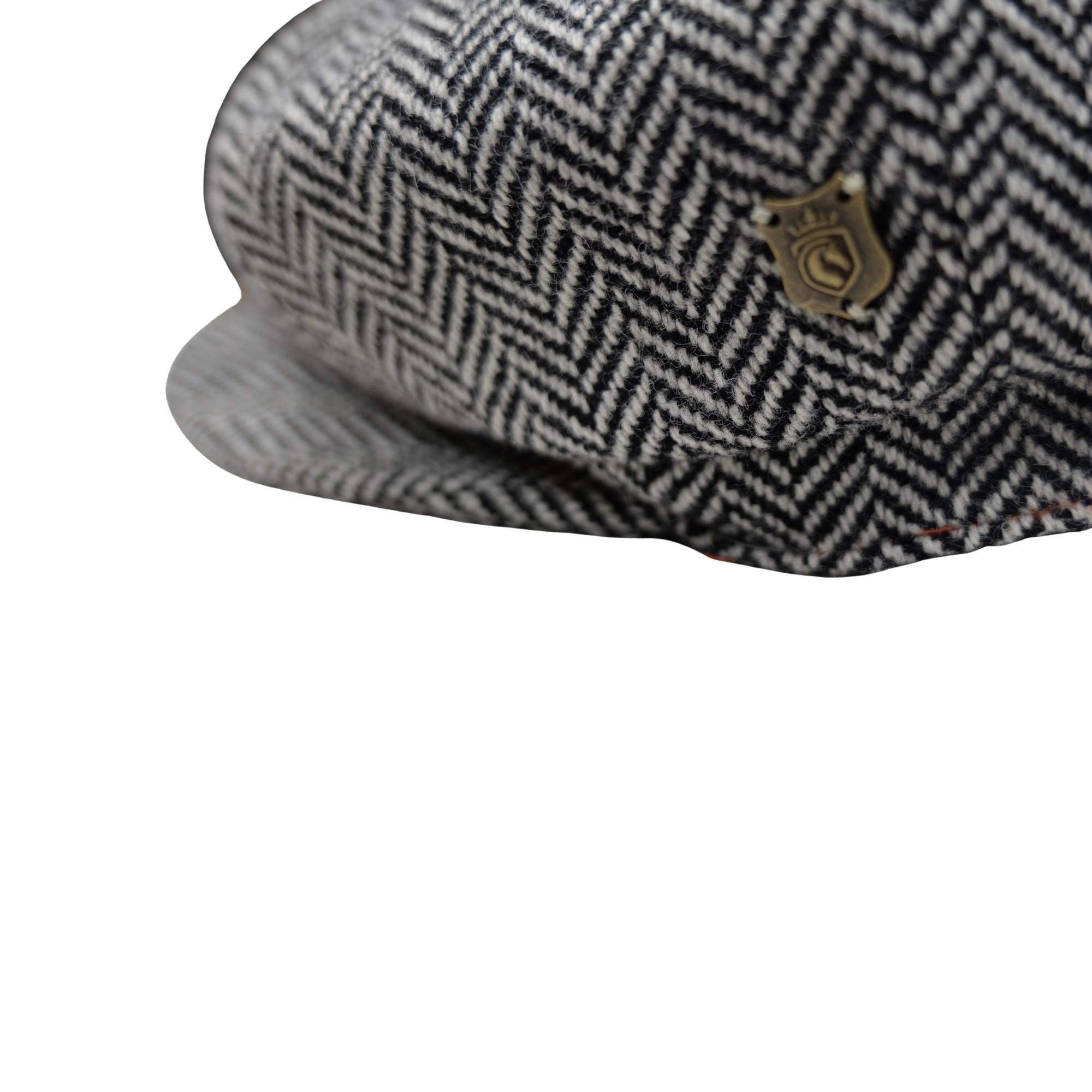 Our Wool Baker Boy features a distinct Herringbone pattern, adding a touch of luxury. Every Baker Boy is meticulously crafted using the finest materials, including premium wool, woven with tradition and care. Our hats also come with an elasticated back to accommodate different head shapes. This iconic fabric is made from pure virgin wool, produced in Scotland, and embodies the rich heritage of artisanal weaving.